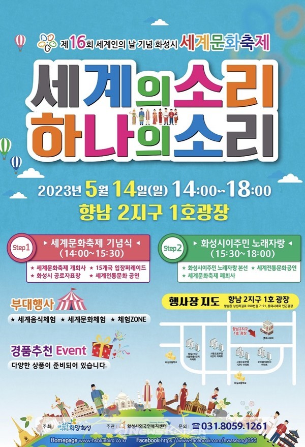 (화성 = 뉴스코리아) 권순철 기자 = 제16회 세계인의 날을 기념하여 화성시에서 14일 개최된 ''세계의 소리 하나의 소리'가 정명근 화성시장 및 기타 주요 관계자들의 전폭적인 지원과 응원 아래 성공적으로 그 시작을 알리고 있다. 현장에서는 내국인들만큼 다양한 국적의 외국인들이 인산인해를 이루고 있음을 확인할 수 있다.