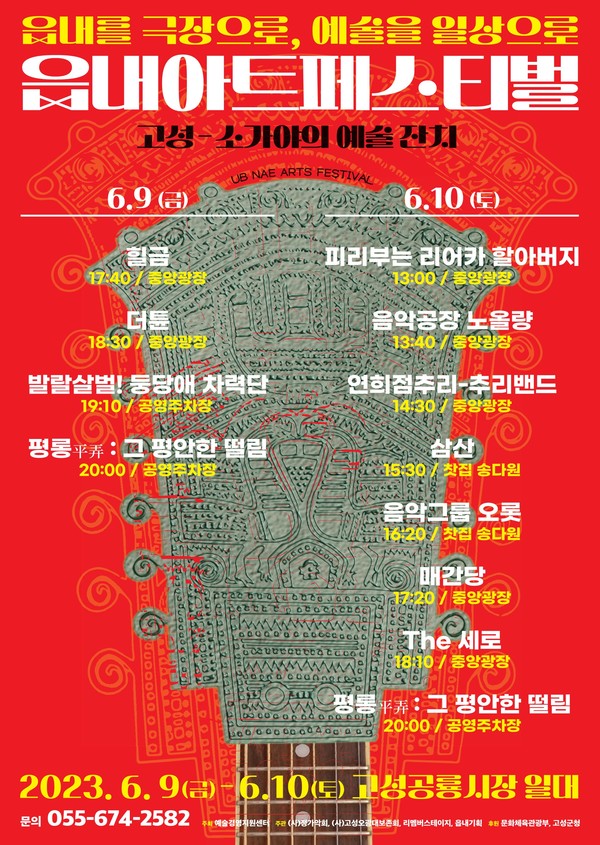 (서울=뉴스코리아) 박지혜 기자 = 사단법인 정가악회(대표: 천재현) 와 국가무형문화재 제7호 사단법인 고성오광대보존회(회장: 전광열)가 오는 2023년 6월 9일(금) ~ 6월 10일(토) 까지 이틀간 고성 공룡시장 일대(중앙광장, 공영주차장, 찻집 송다원) 에서 쇼케이스 페스티벌 <읍내아트페스티벌>을 개최한다.