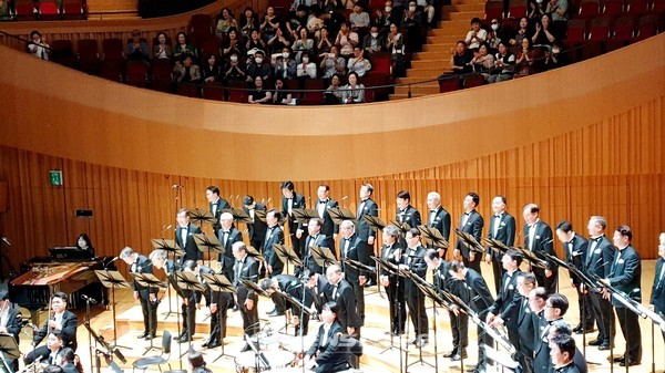 (뉴스코리아=서울) 박광호 기자 = 11일 잠실 롯데콘서트홀에 장군 별이 39개, 영관 무궁화가 20여 개가 떳다. 지난 2015년 창단한 대한민국 군가 합창단은 예비역 장성과 영관장교, 대학교수, 성악가 등 90여 명의 남성으로 구성되어, 매년 6월 호국보훈의 달에 정기 연주회 공연을 해오고 있으며 올해로 제6회 정기공연을 실시했다.