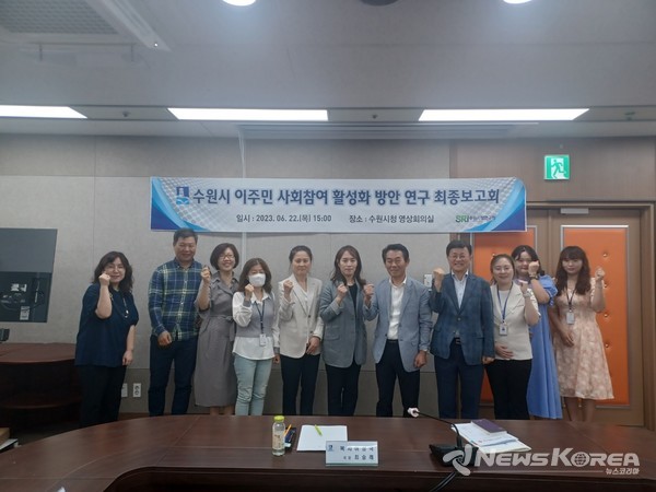 (뉴스코리아=수원) 김성덕 기자 = 수원시가 22일 수원시 영상회의실에서 ‘수원시 이주민 사회참여 활성화 방안 연구’ 최종보고회를 열고, 이주민·시설종사자 대상 심층 면접조사 결과를 공유했다. 또 이주민의 사회참여 활성화 정책을 제언했다.