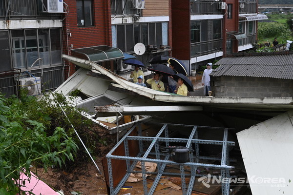 (뉴스코리아=음성) 최신 기자 = 조병옥 음성군수는 오늘(15일) 산사태로 인한 주택 매몰 구역 등 집중호우 피해 현장을 방문해 피해 예방과 복구 조치에 나섰다.