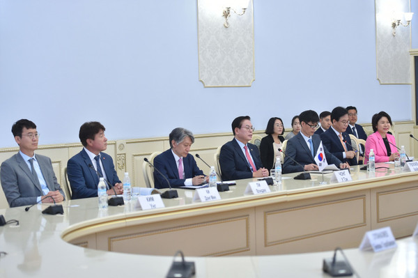 (비쉬케크=뉴스코리아) Mamralieva Aida 통신원 = Sadyr Japarov (사디르 자파로프) 키르기스스탄 대통령이 키르기스스탄에 방한 중인 정우택 국회 부의장을 영접했다.