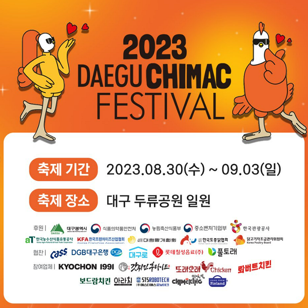 2023년 치맥축제는 두류공원 시민광장 조성공사로 예년보다 늦은 8월 30일부터 9월 3일까지 5일간 두류공원 일원과 평화시장에서 열린다.
