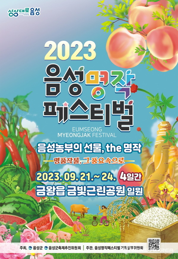 (뉴스코리아=음성) 한기석 기자 = 2023 음성명작페스티벌이 오는 21일부터 24일까지 ‘음성농부의 선물, THE 명작’이라는 주제로 금왕읍 금빛근린공원에서 개최된다.
