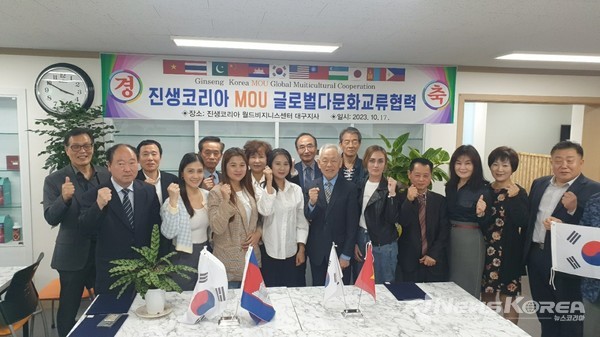 (뉴스코리아=대구) 김상우 기자 = 진생코리아(대표 김태훈) 글로벌 다문화 교류협력 MOU 체결식후 필리핀. 우즈베키스탄, 파키스탄, 베트남등 각국 대표들에게 위촉장을 수여했다.
