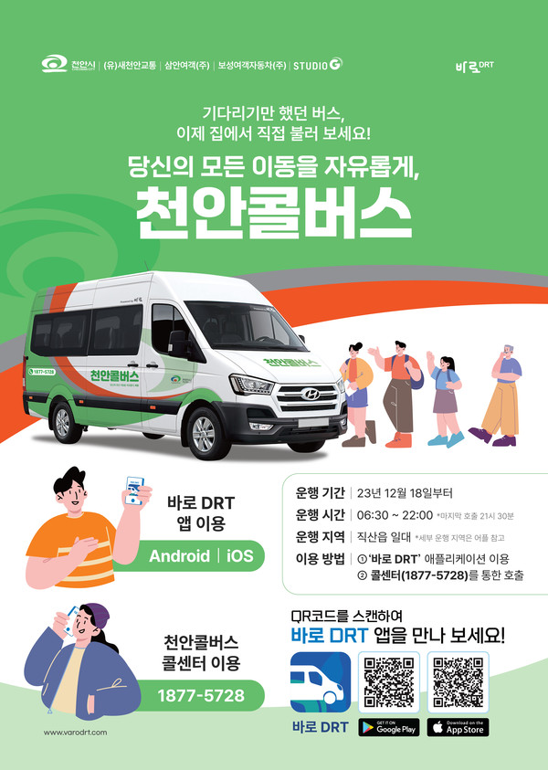 천안시 관계자는 “천안콜버스는 새로운 이동수단으로서 기존의 전철, 시내버스와 함께 대중교통의 한 축을 담당할 것으로 기대한다”며 “충분한 홍보와 안내를 통해 시민들이 편리하게 이용할 수 있도록 노력하겠다”고 밝혔다.