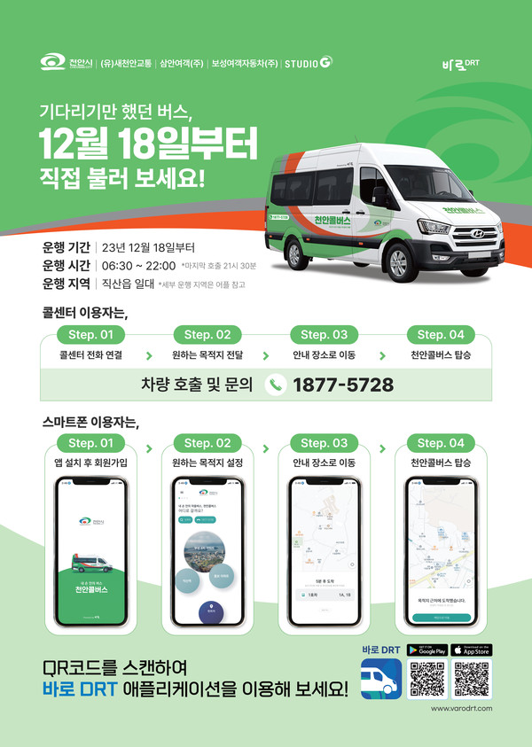 (뉴스코리아=천안) 최신 기자 = 정해진 노선과 운행 시간표 없이 승객이 부르면 오는 ‘천안 콜버스’가 오는 18일부터 본격 운행한다.