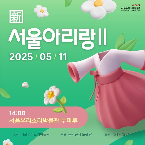 (뉴스코리아=서울) 박지혜 기자 = 음악공장 노올량(대표 : 민소윤) 이 2025년 5월 11일(일) 14시 서울우리소리박물관 누마루에서 <신 서울아리랑Ⅱ> 프로젝트를 진행한다.